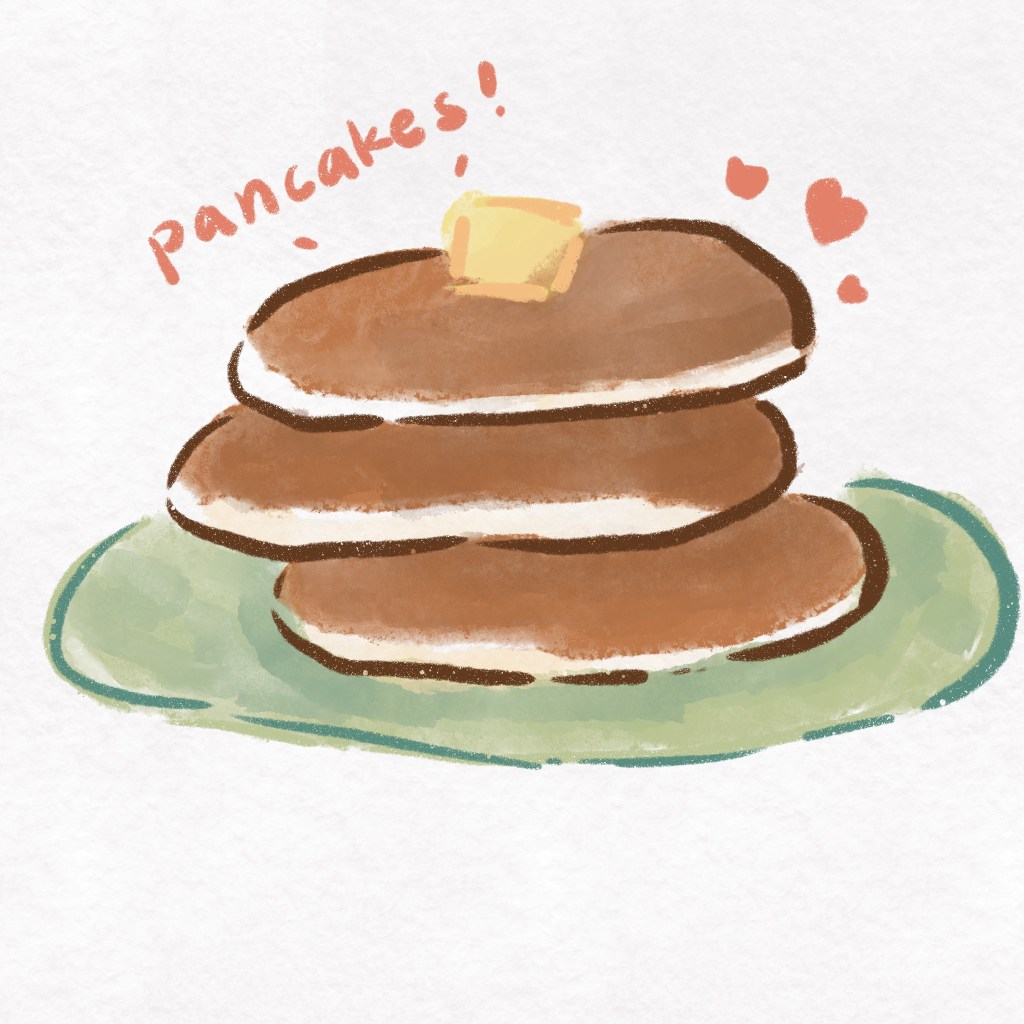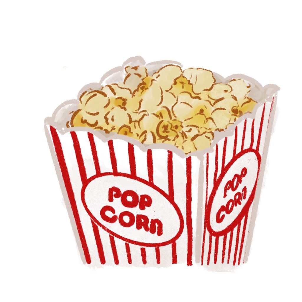 這兩個適用Procreate上面就有的三隻筆刷畫,一隻叫老海灘、袋鼬和乾式墨粉筆刷,我是用乾式墨粉筆刷先畫物品的外誆,再用老海灘塗色,之後在用袋鼬暈染開來已達到水彩的效果,第一個是好吃的鬆餅🥞,第二個爆米花🍿。