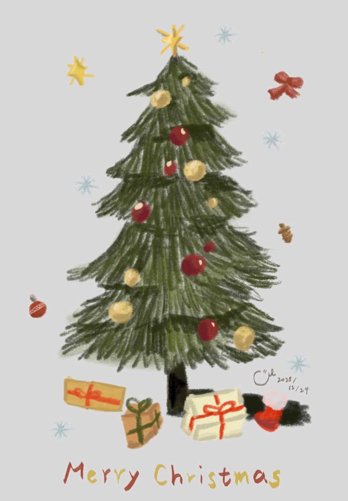 我媽媽說幫她畫一個聖誕節賀卡我就畫了一個參考Pinterest 的聖誕樹和一些小元素,我這幾天應該可以在參見我的小角色在畫一張圖片。